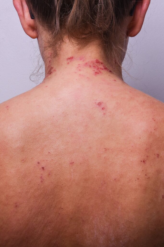 Der kommer ikke nye hudforandringer, antallet af knopper falder, og kløen aftager gradvist. Er du fortsat i tvivl 1 måned efter anden behandling, så ser vi dig til kontrol.